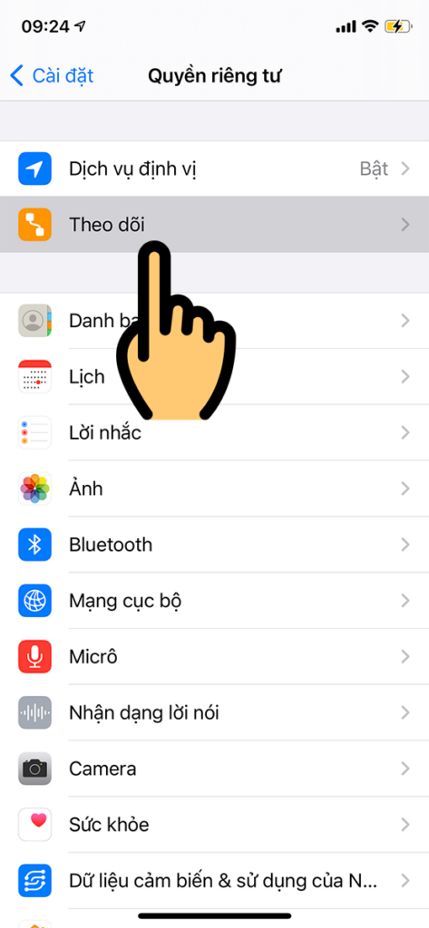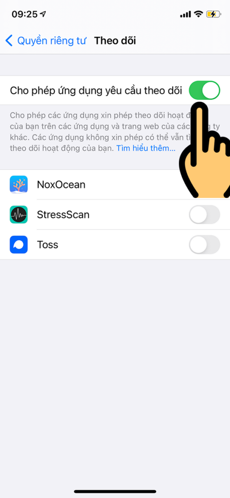 - Tất cả ứng dụng sẽ không thể hỏi quyền theo dõi