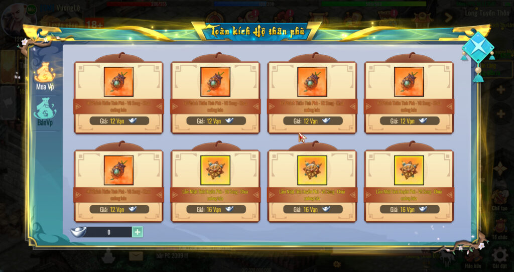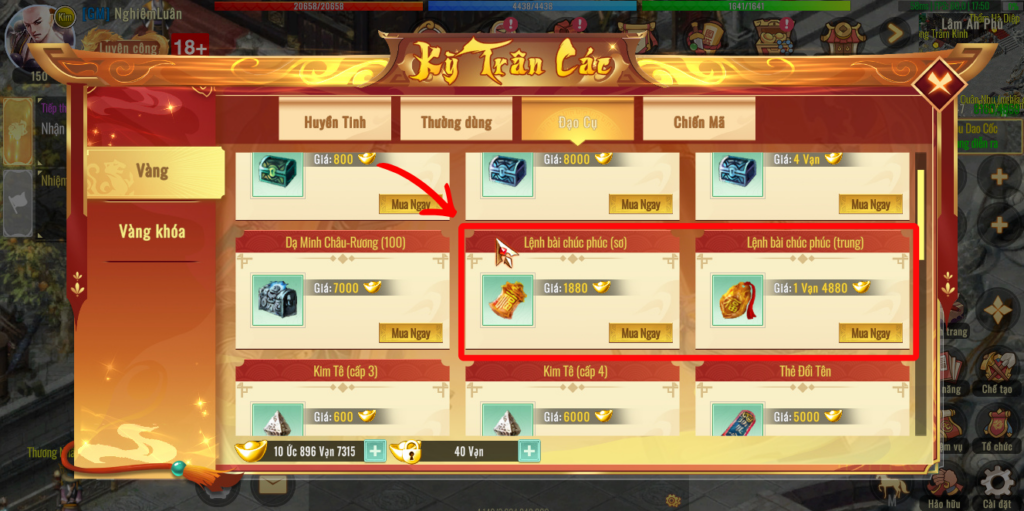 - Lệnh Bài Chúc Phúc (Sơ) & (Trung): Có thể tìm mua dễ dàng tại Kỳ Trân Các -> mục Đạo Cụ.