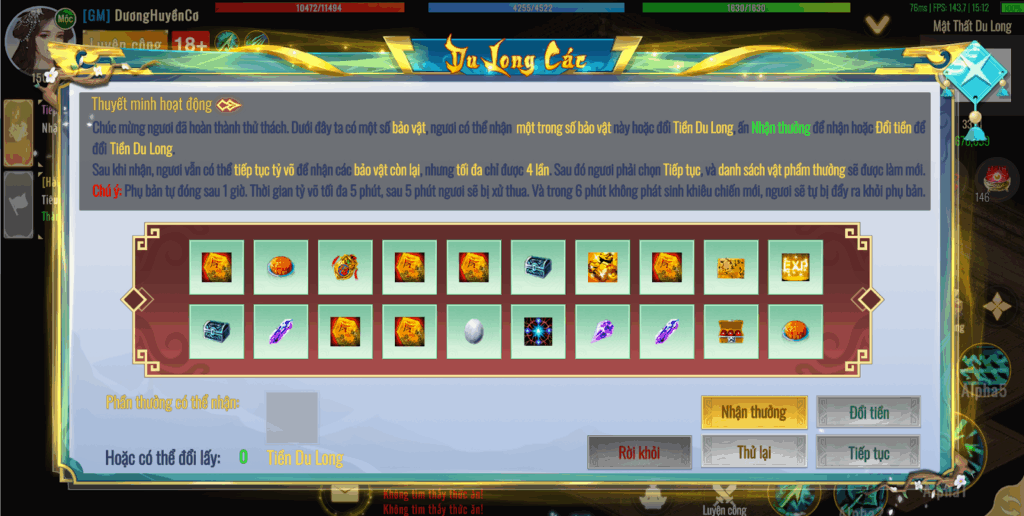 - Hoặc quy đổi thành Tiền Du Long để tích lũy cho các lần tham gia tiếp theo