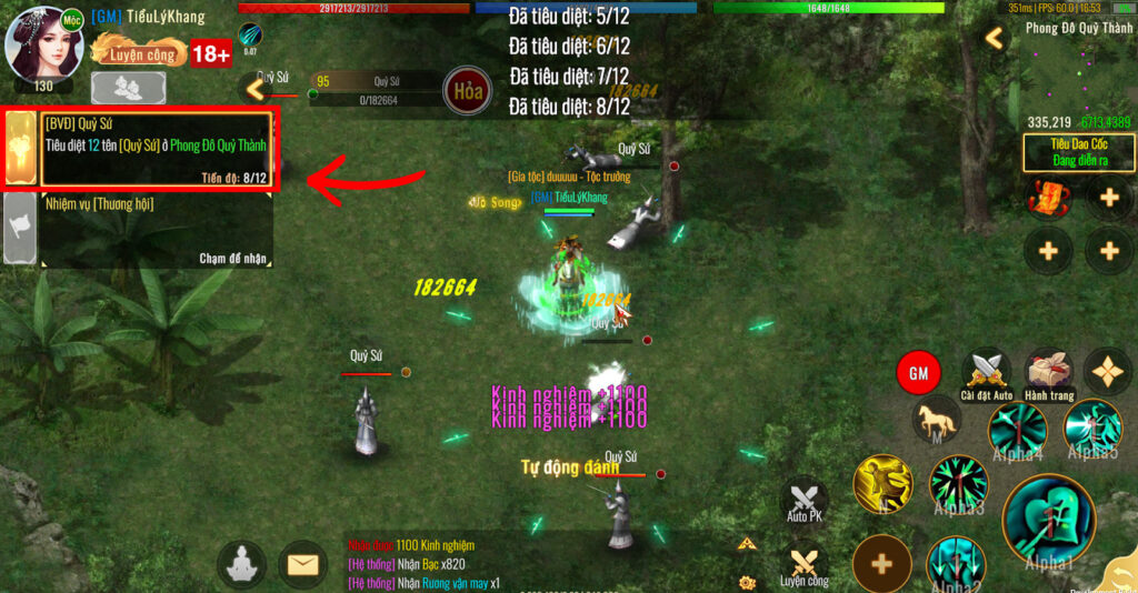 - Tiêu diệt quái: Truy tìm và hạ gục số lượng quái chỉ định theo cấp độ.